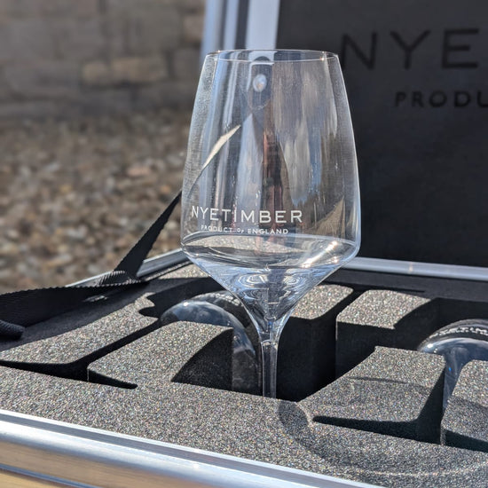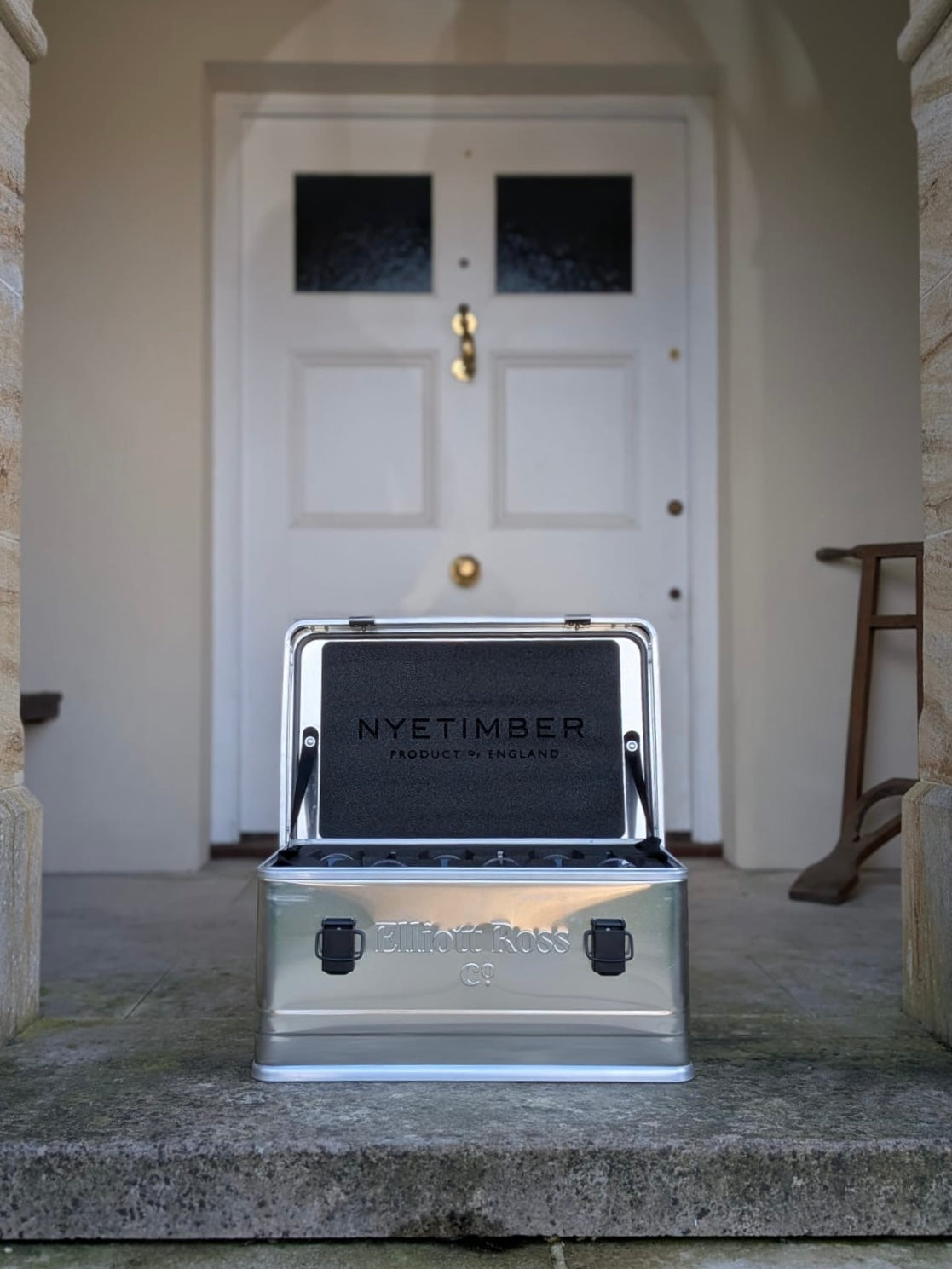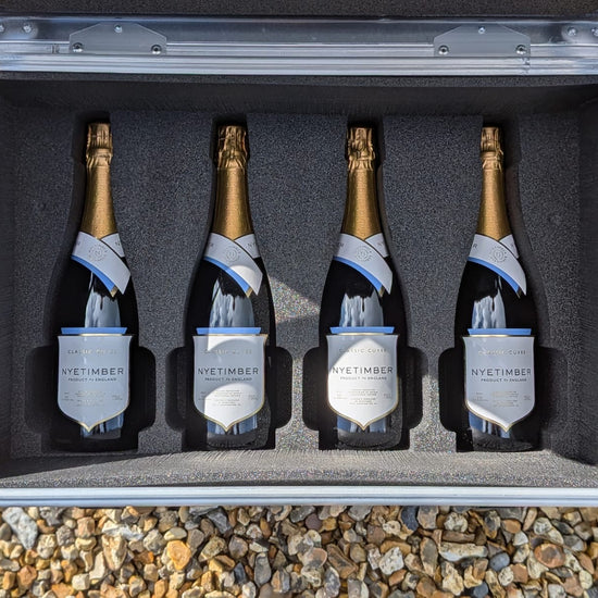 Crafted in collaboration with Nyetimber, England’s finest sparkling wine producer, this exclusive presentation box celebrates the art of English winemaking with elegance and precision.